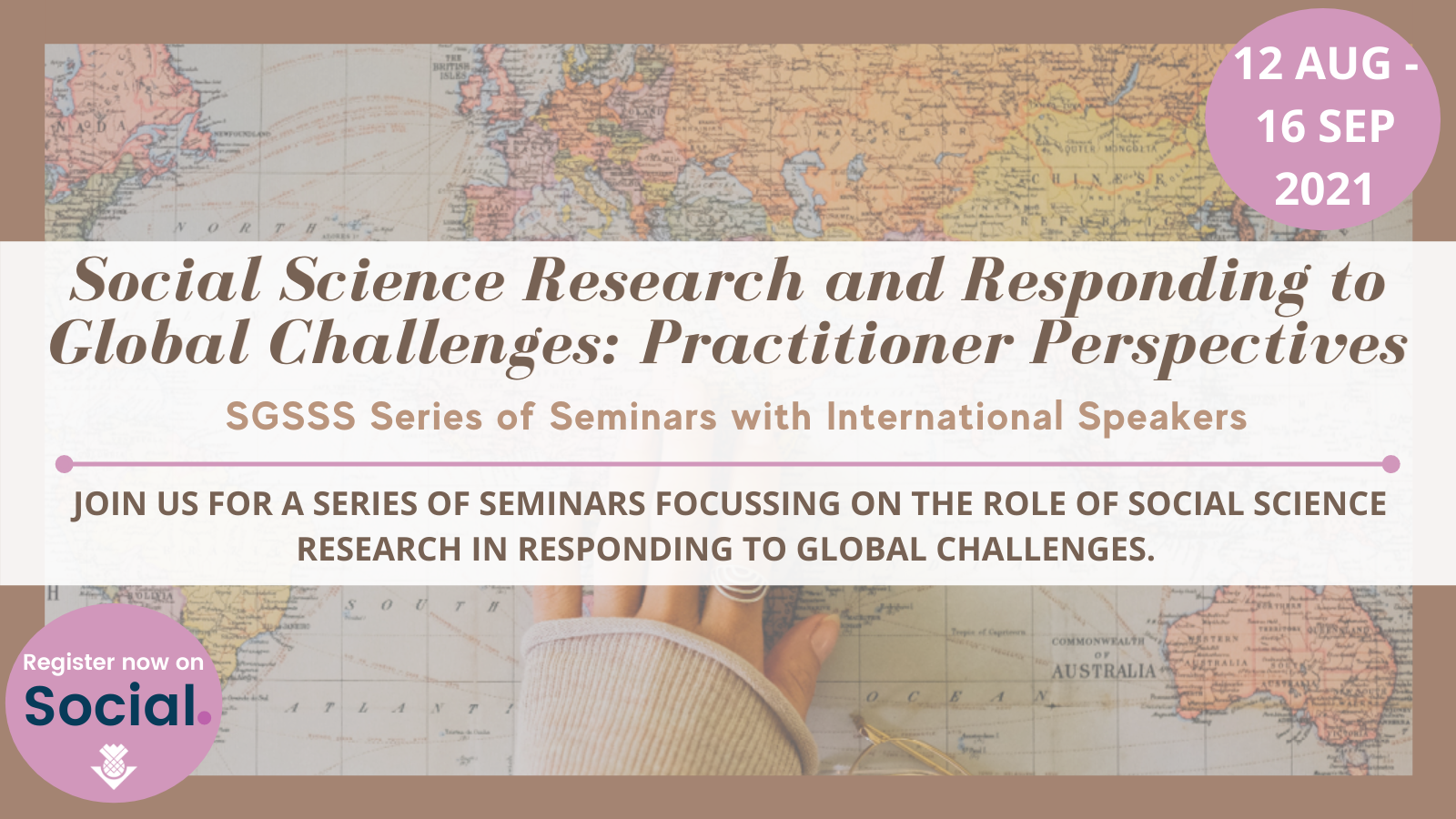 As part of its internationalisation activities portfolio, the Scottish Graduate School of Social Science is organising a series of seminars focussing on the role of social science research in responding to global challenges. We are inviting four practitioners, internationally recognised for their contribution towards addressing various global challenges, to reflect on how social science research […]